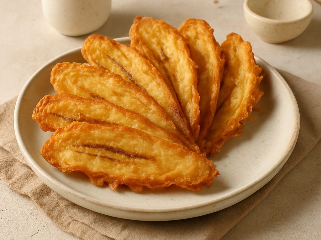 Nikmati kelezatan Pisang Goreng Kipas — camilan renyah dengan bentuk unik dan rasa istimewa yang memanjakan lidah.